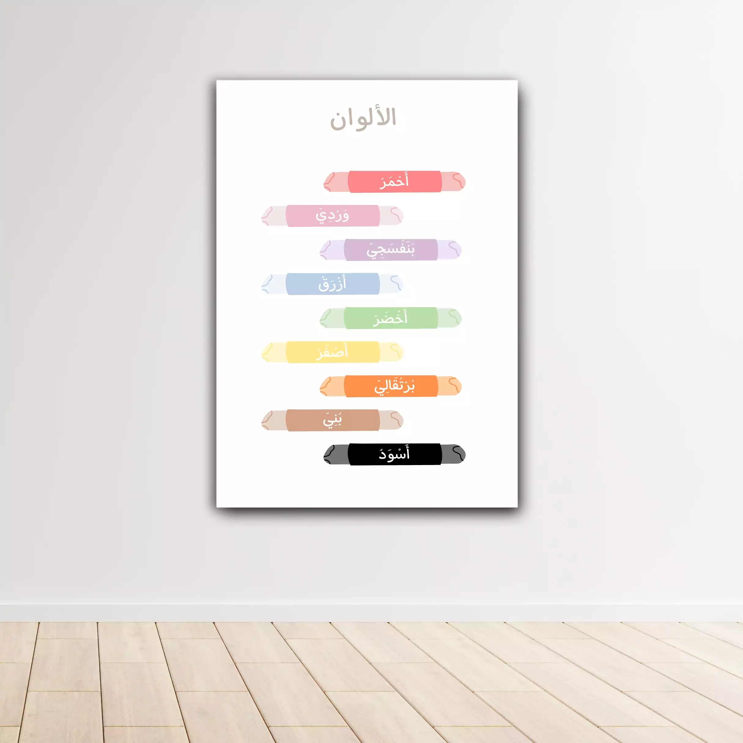 Affiche illustrée des couleurs, idéale pour les enfants dès 2 ans. Disponible en format PDF ou plastifiée A4 – Français ou Arabe. Support visuel simple et coloré.