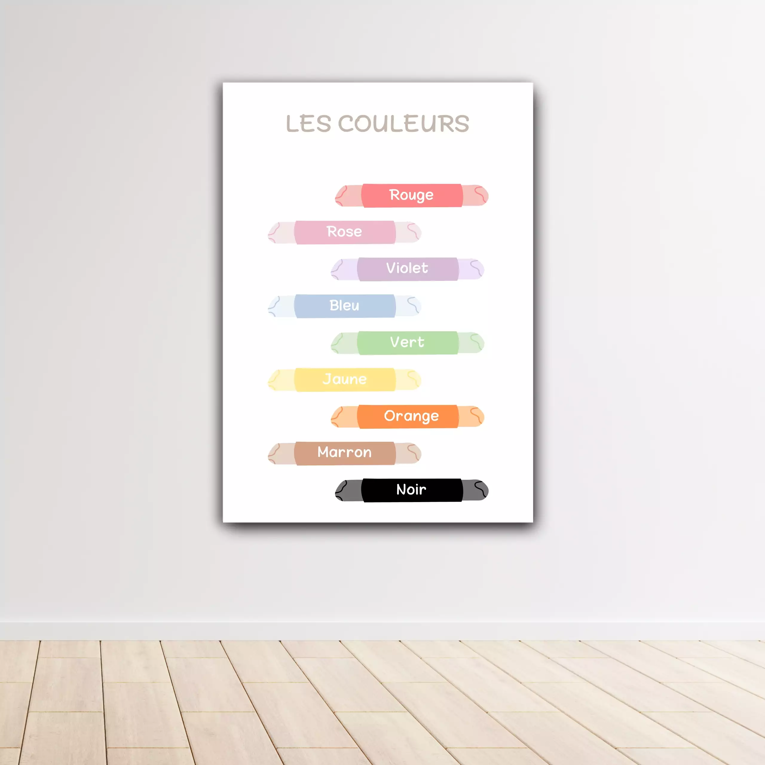 Apprends les couleurs  grâce à cette affiche claire, attrayante et spécialement conçue pour les enfants. Une ressource visuelle parfaite pour décorer un espace d’apprentissage tout en enrichissant le vocabulaire.